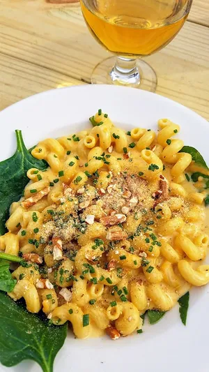 Highly Elevated Mac and cheese incorporating nutritious vegetables and spices PLUS Lions mane "lobster meat"One World Zero Waste